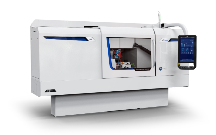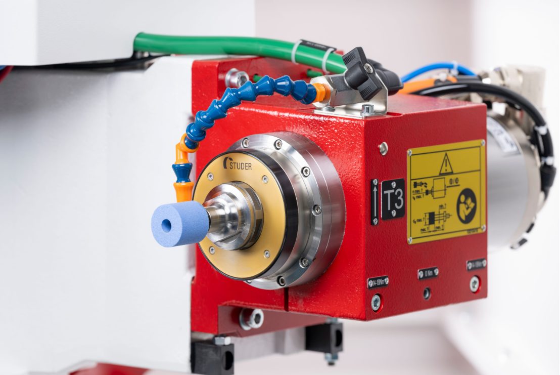 Customers also benefit from the innovative design that STUDER has developed for the S23. The arrangement of the wheel head allows great versatility for the grinding tools in a single clamping, increasing efficiency, especially with geometrically complex workpieces. State-of-the-art grinding technology such as contact detection, semi-automatic balancing of the external grinding wheel and the optional in-process measuring system ensure high-quality results.